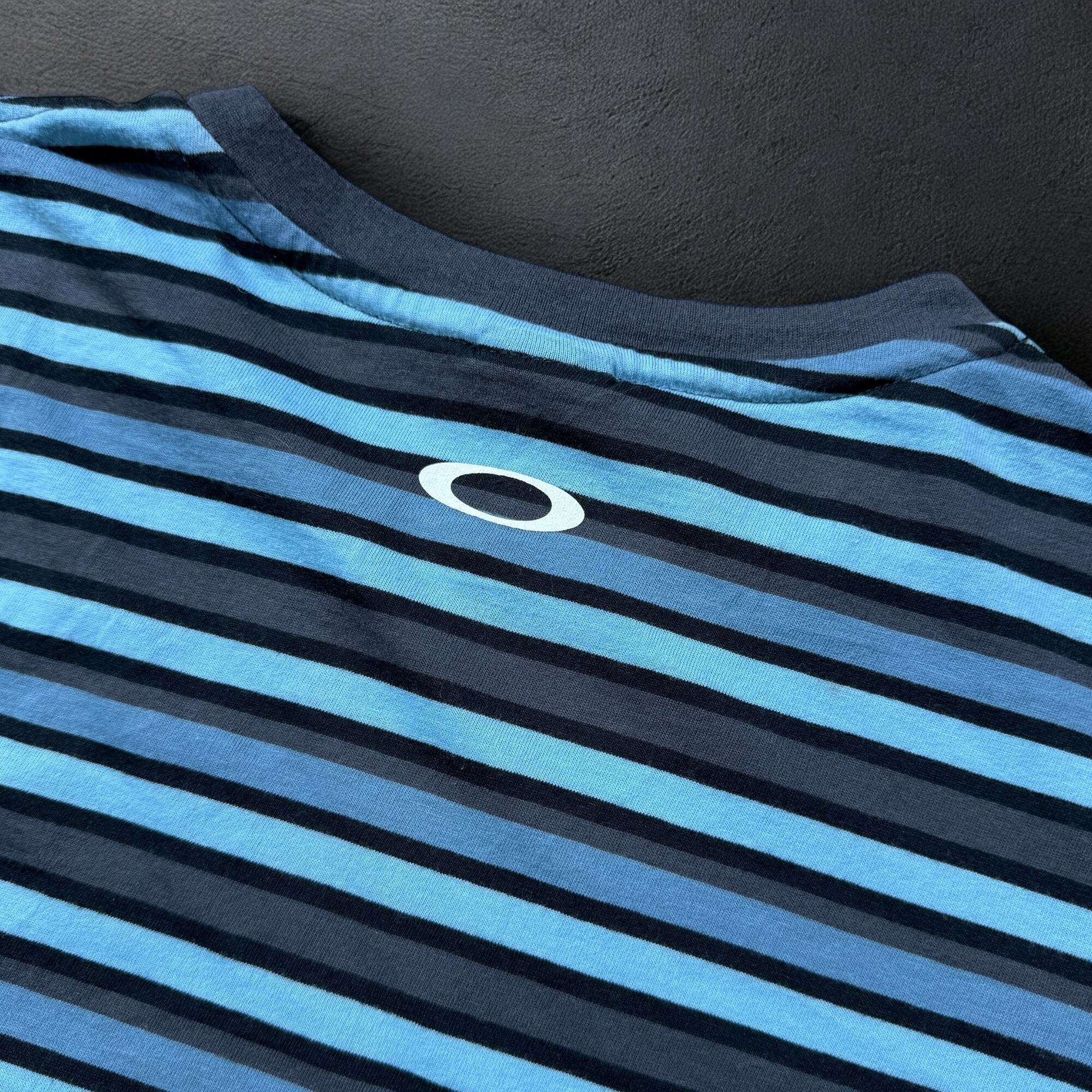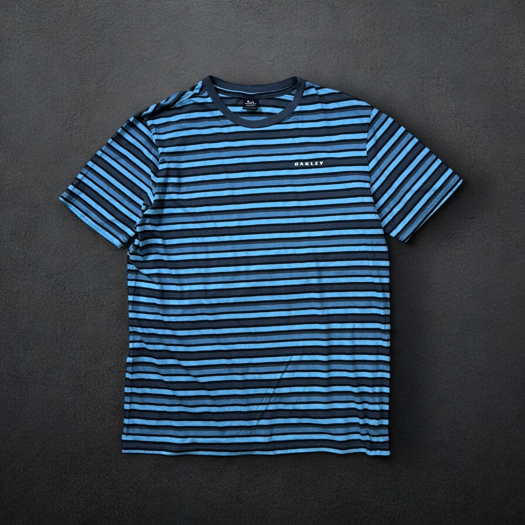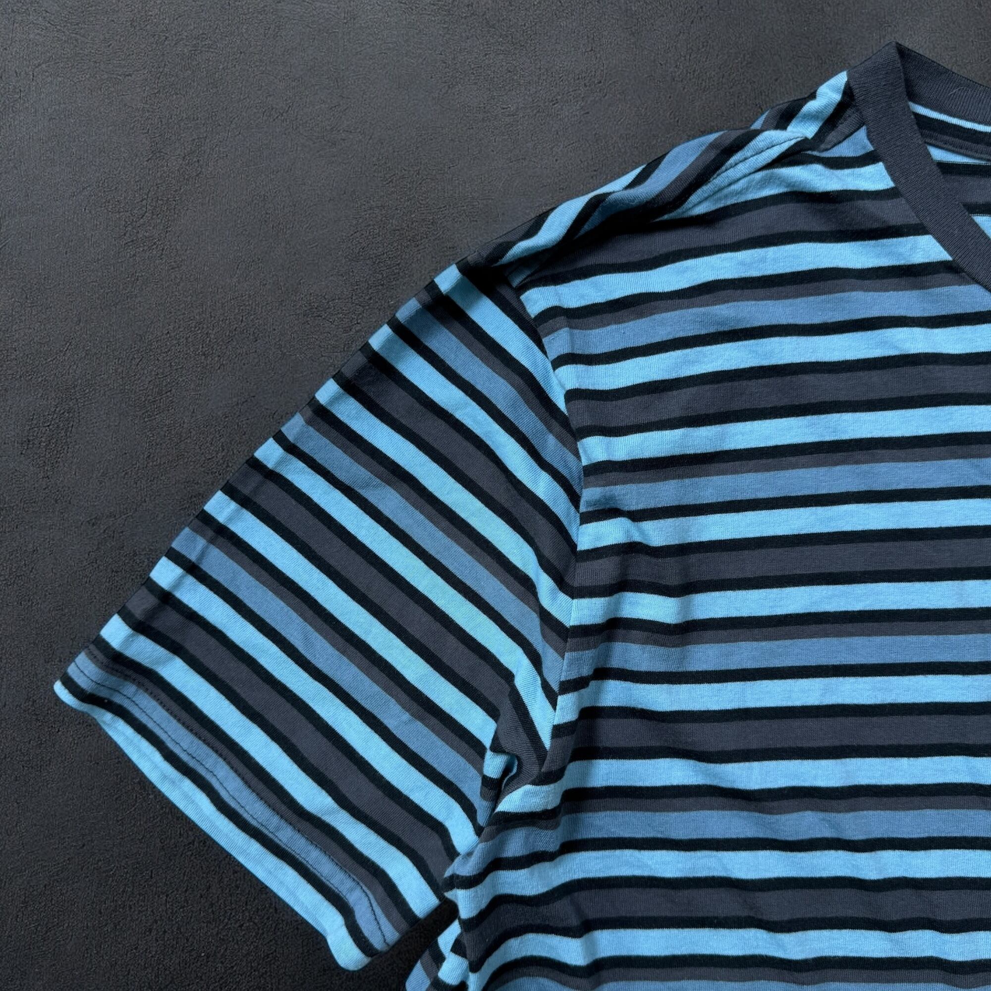 ピッチの細かいボーダー柄に胸にワンポイントのロゴが入るシンプルなデザイン
