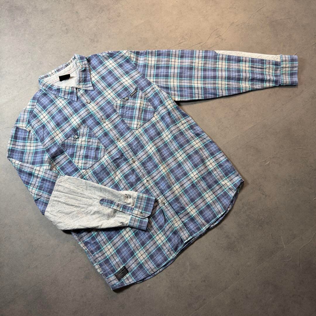 こちらは袖の切り返しがアクセントになったチェックシャツ