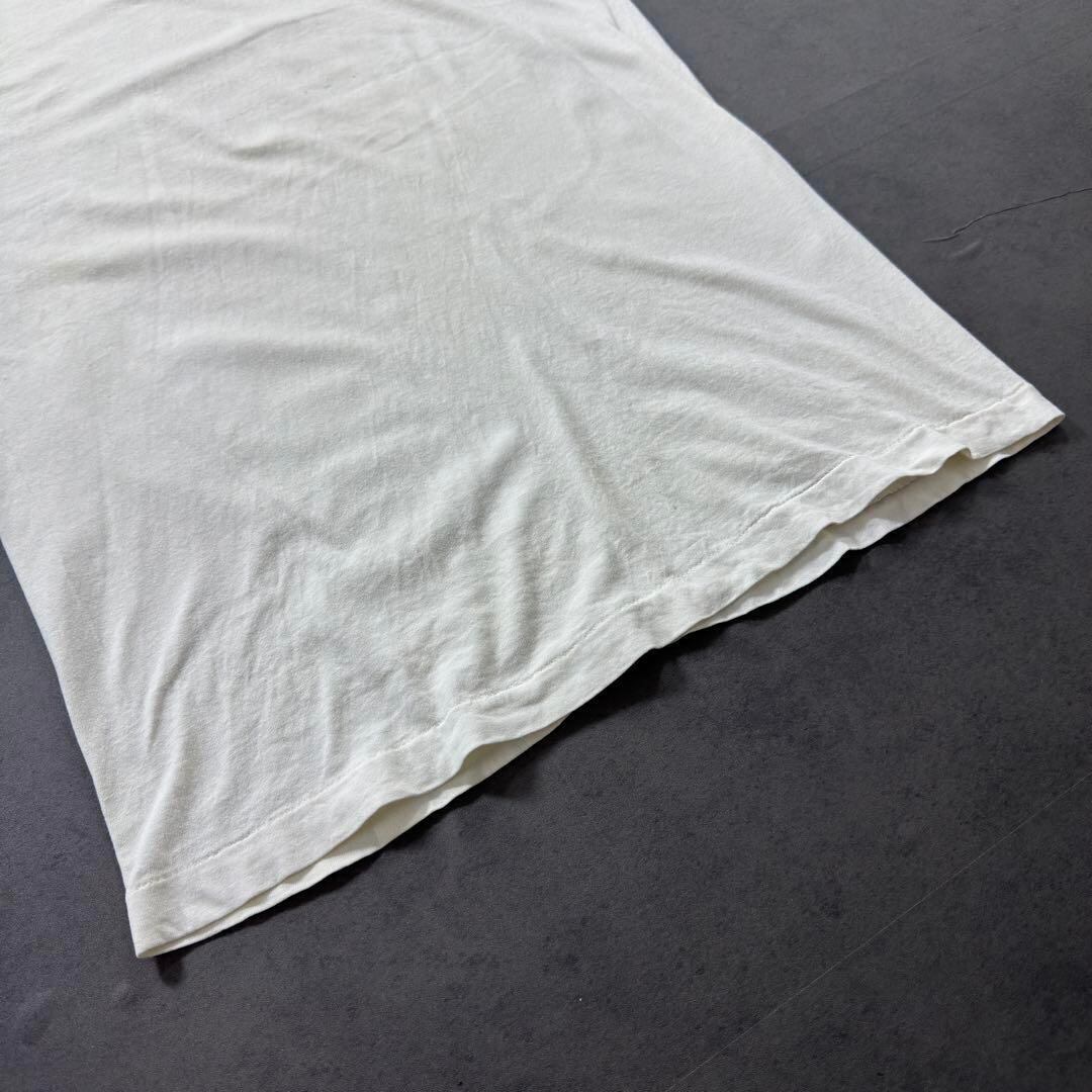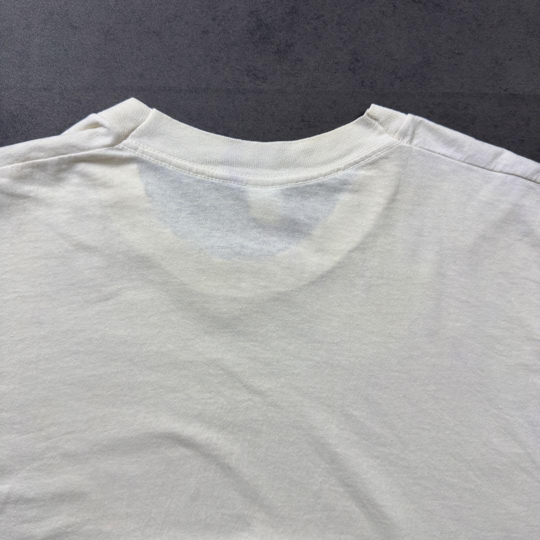 襟周りや両脇などにシミによる変色、全体的な使用感や経年変化もありますがそれも含めこのTシャツの雰囲気かと思います。