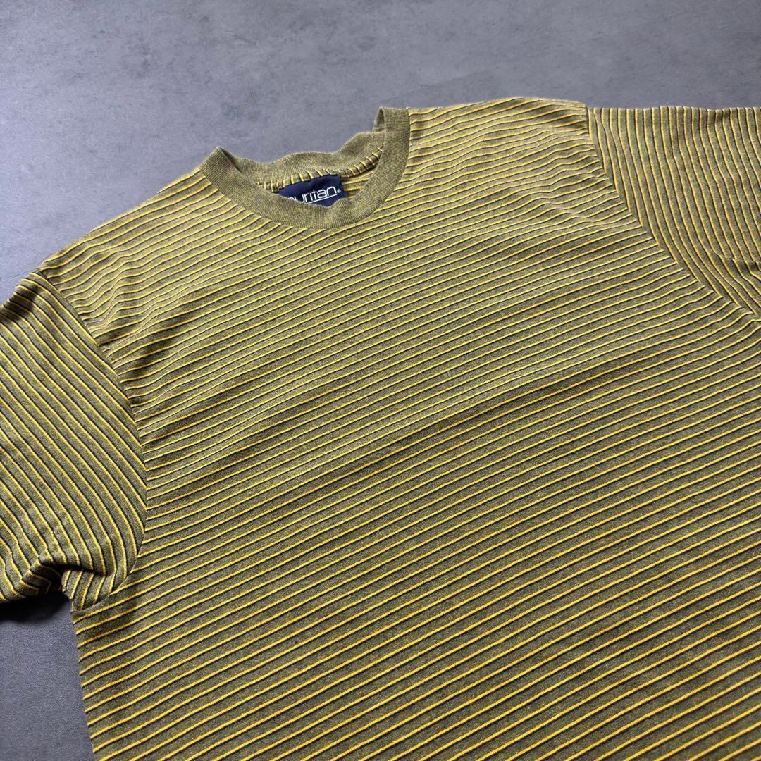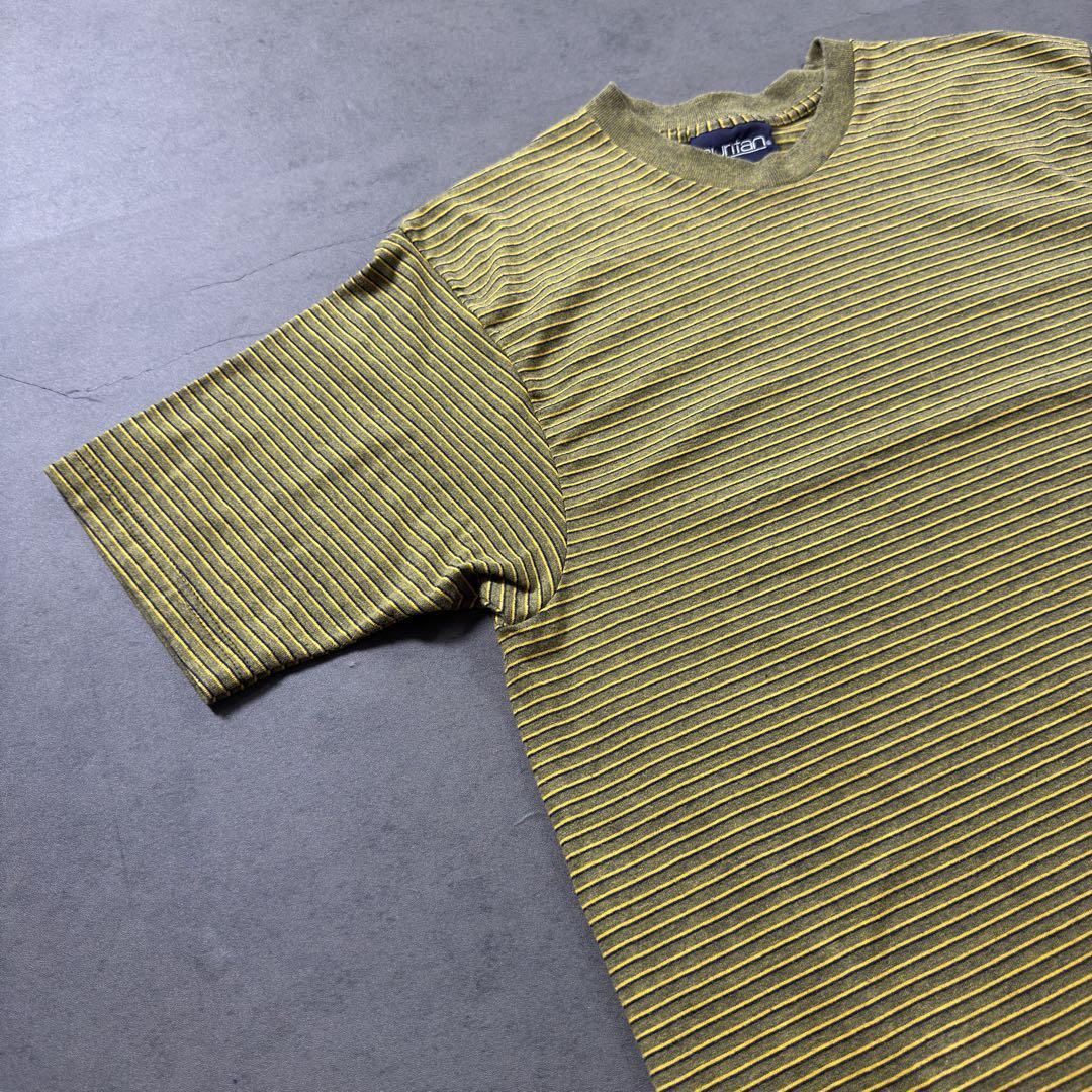 マスタードカラーをベースにイエローとネイビーのボーダー