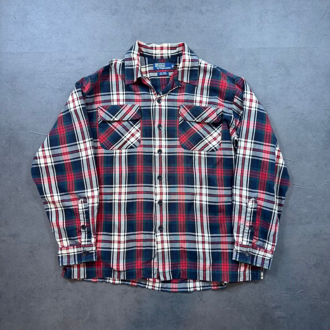 オープンカラーのネルシャツ、裾はボックスタイプ、ラルフらしい上質で柔らかなファブリック、間違いなくかっこいいシャツです