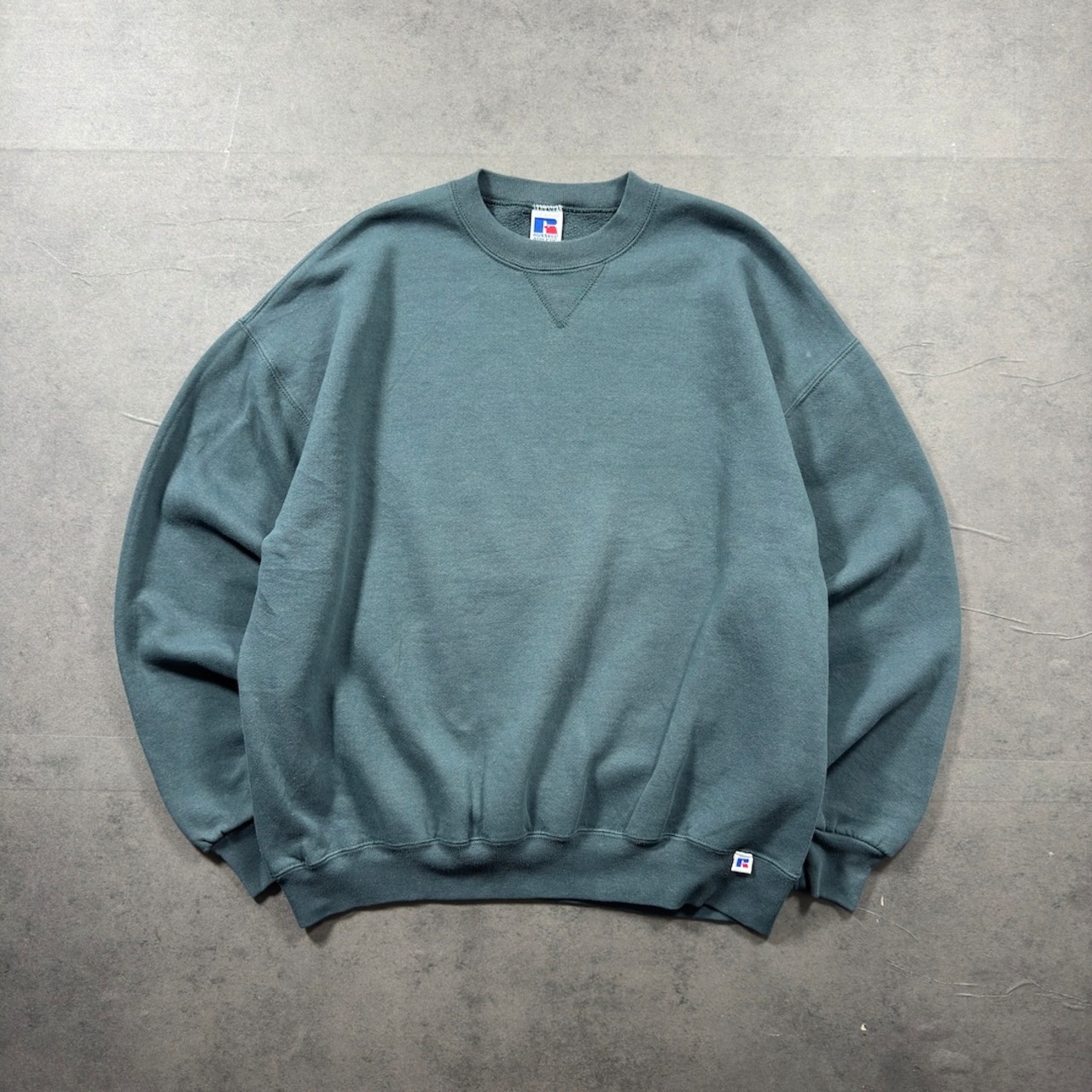 90s Russell Athletic sweatshirt solid blue green XL 古着