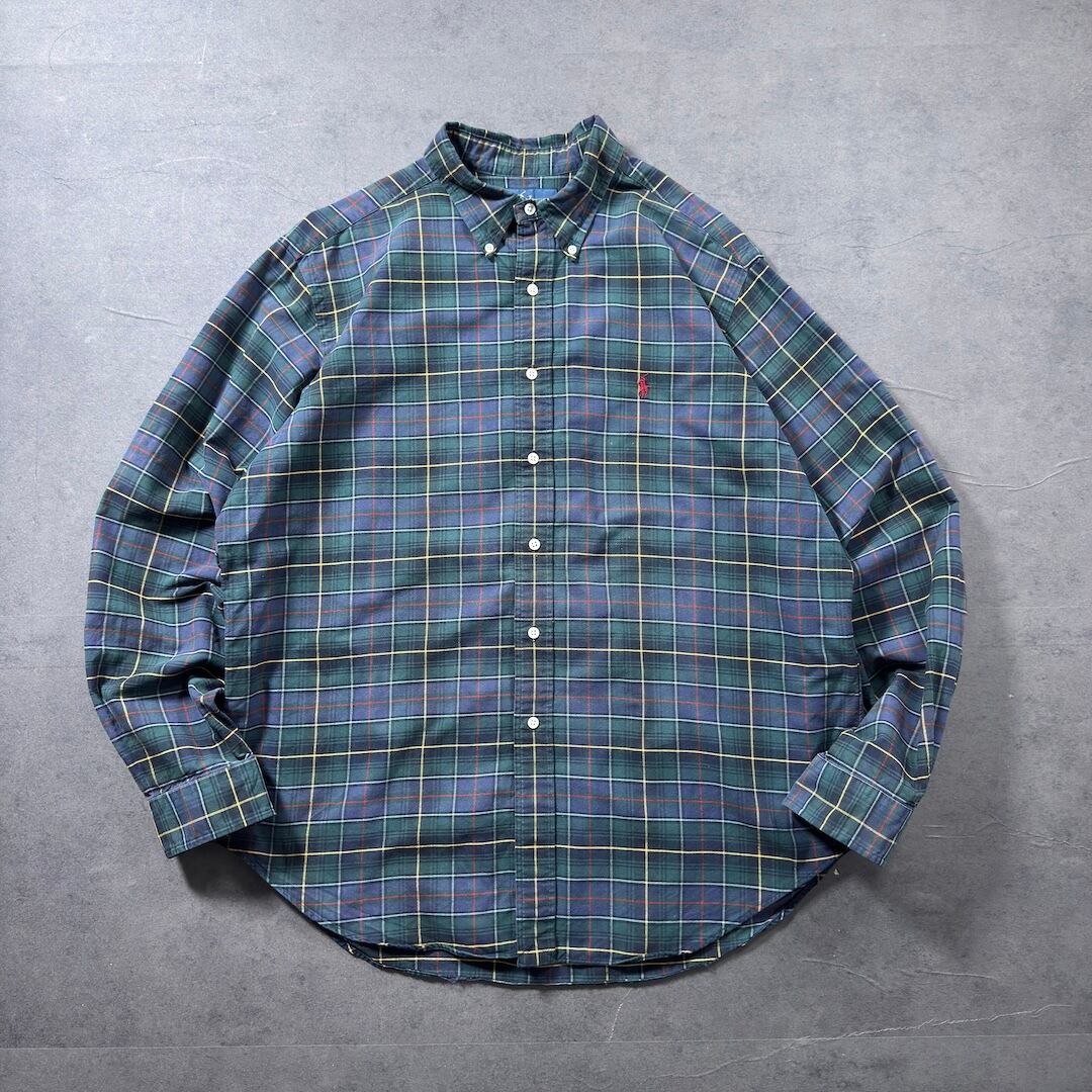 落ち着いた独特な色味のグリーンとネイビーをベースとした配色の素晴らしいタータンチェック柄はさすがラルフローレンといったところ