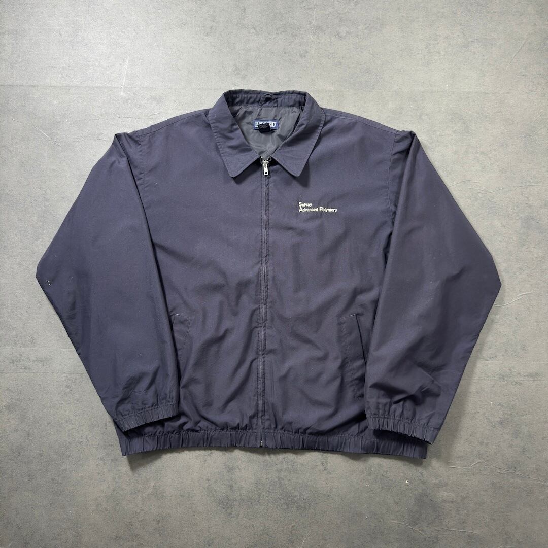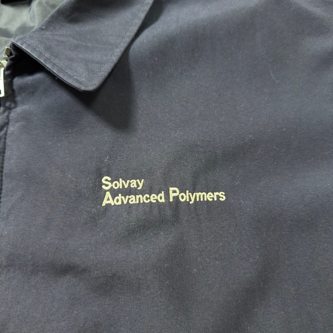 短丈のボックスシルエットのスイングトップに近いスタイルのジャケットで胸に企業の刺繍ロゴが入る、企業関係者向けに作られた企業モノの一着になります