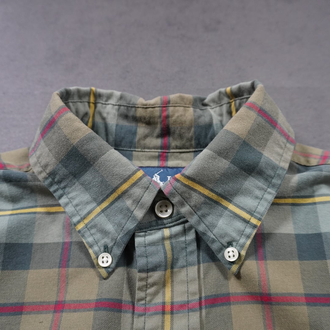 オリーブグリーン、ブルーグレーを基調とした配色の素晴らしいタータンチェック柄のラルフローレンのボタンダウンシャツ