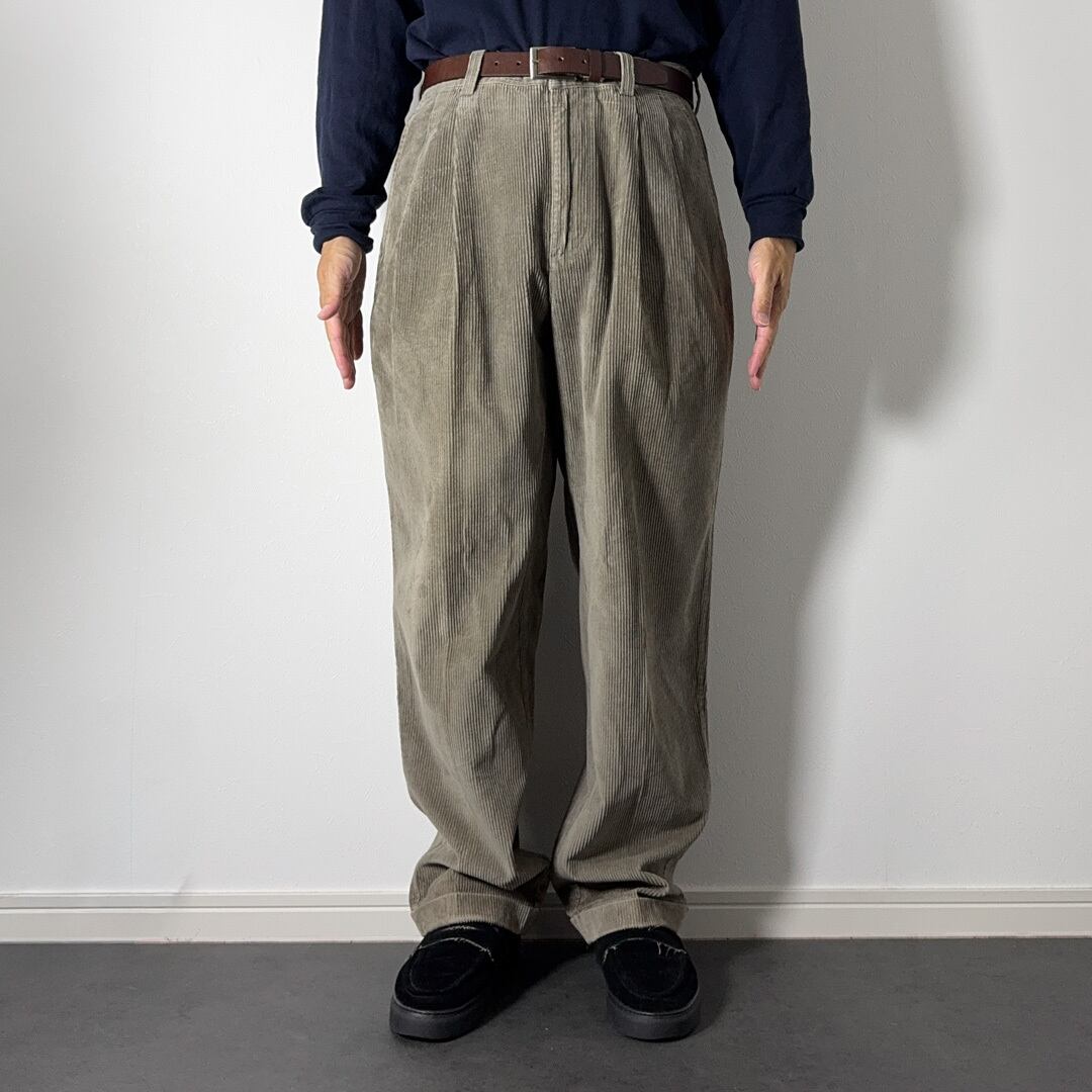 太畝コーデュロイ、ツータック、リラックスフィット、裾にかけてのテーパードのグッドデザイン