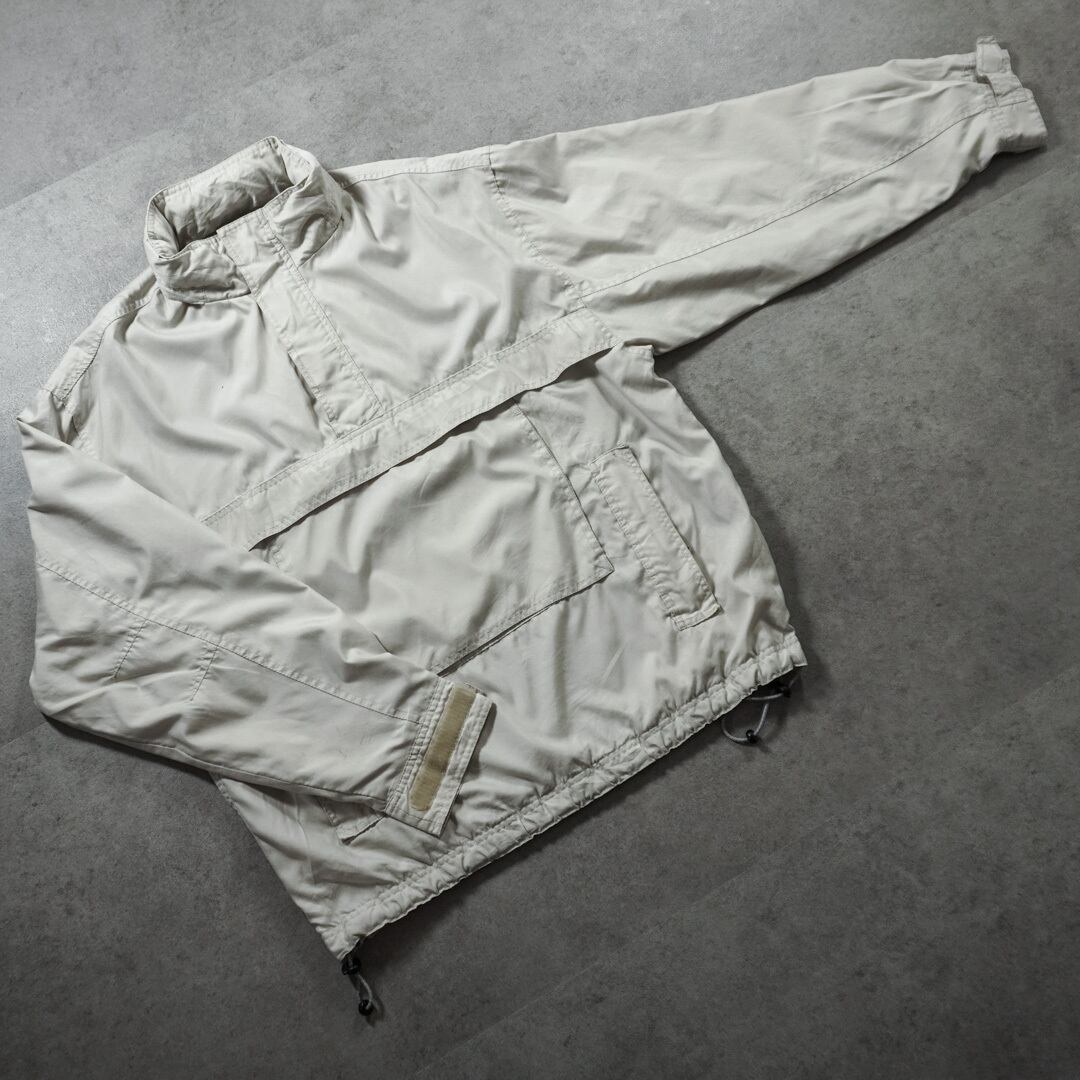特徴的な大きなフロントポケット、収納式のフード付き、裾にはドローコード、袖はベルクロでシルエット調整可能、太いアームホール、身幅広めの短丈ボックスシルエット、完璧です