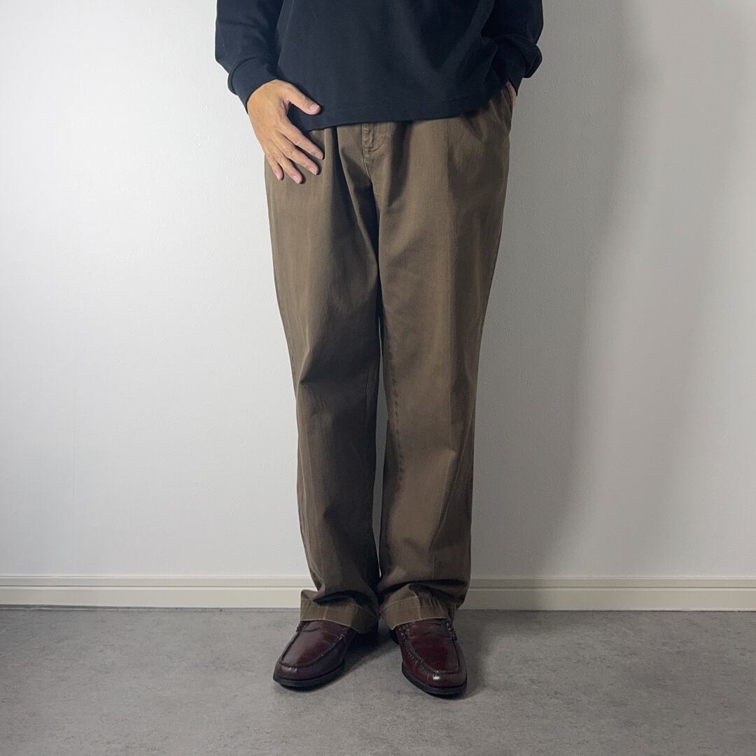 その他、USEDのチノパンによくみられるセンタープレスに沿った線上の色落ち、経年変化などありますが、大きく目立つヨゴレやダメージは見受けられず一般的な古着のコンディションです。