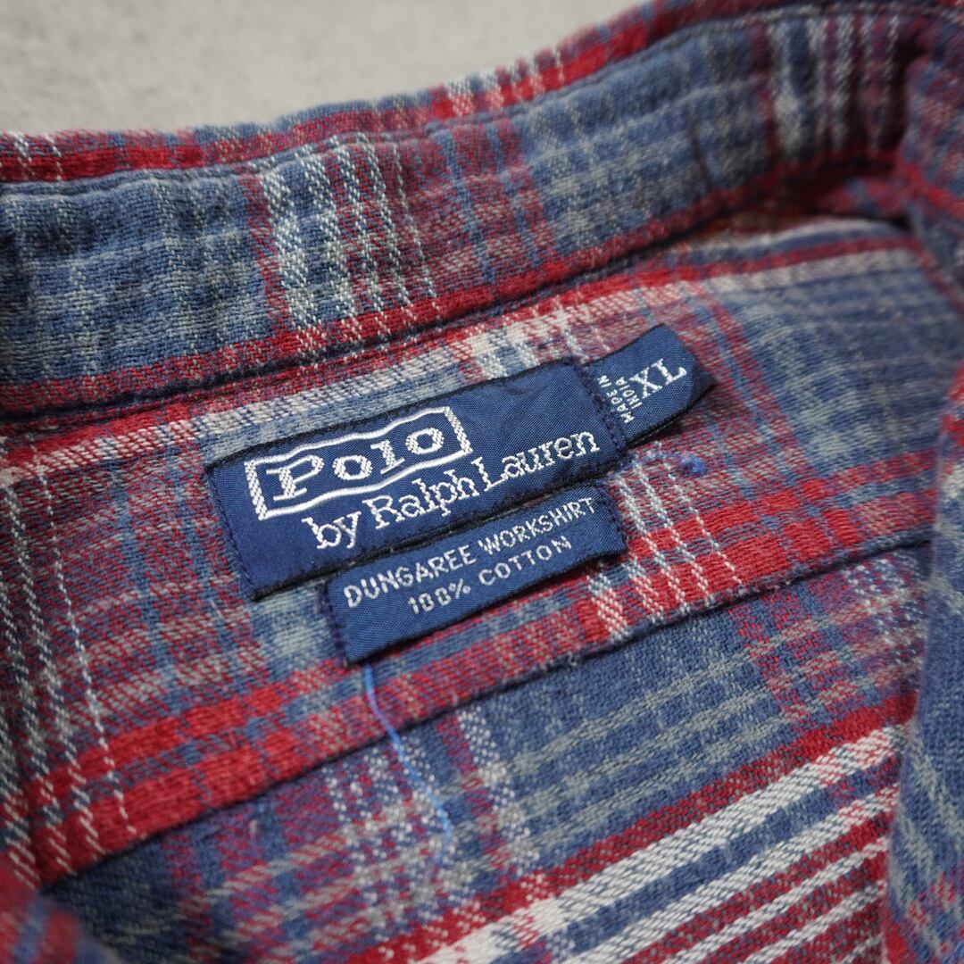 90sのモデルで猫目ボタンやトリプルステッチ、ガチャポケとヴィンテージのワークシャツをサンプリングしたラルフらしいシャツ