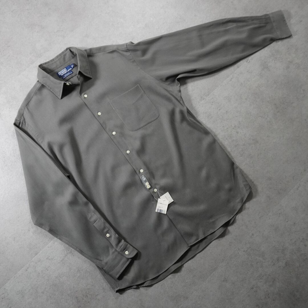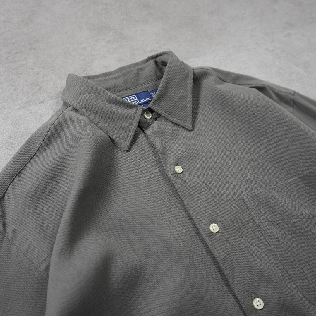 襟はラルフでは数少ないボタンダウンではないレギュラーカラー、ポニー刺繍ロゴもないワントーンの極めてソリッドなデザイン