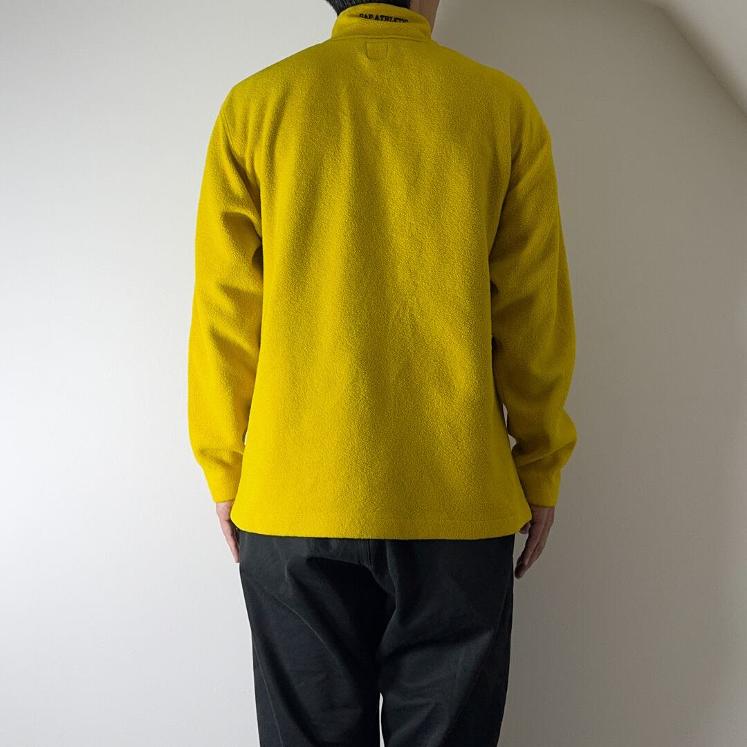 マスタードイエローといったカラーが印象的なシンプルなハーフジップタイプのフリース