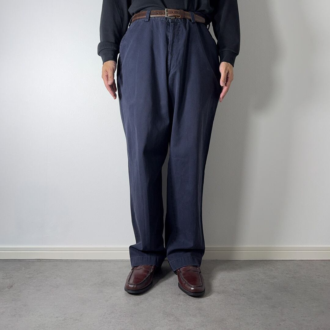 初期のポロチノは、ANDREW(アンドリュー)と同じウエストはツータックのものが多いですが、こちら見かけることもかなり少ないノータックのタイプ、サイドもツータックと違いシングル仕立てになっています