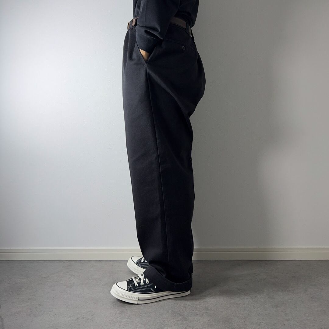実寸でW39、また腰裏のウエスト調整ステッチの開かれているためウエストは大きめですが、ベルトで絞って穿いていただくとしっかり太い良いシルエット着用いただけます