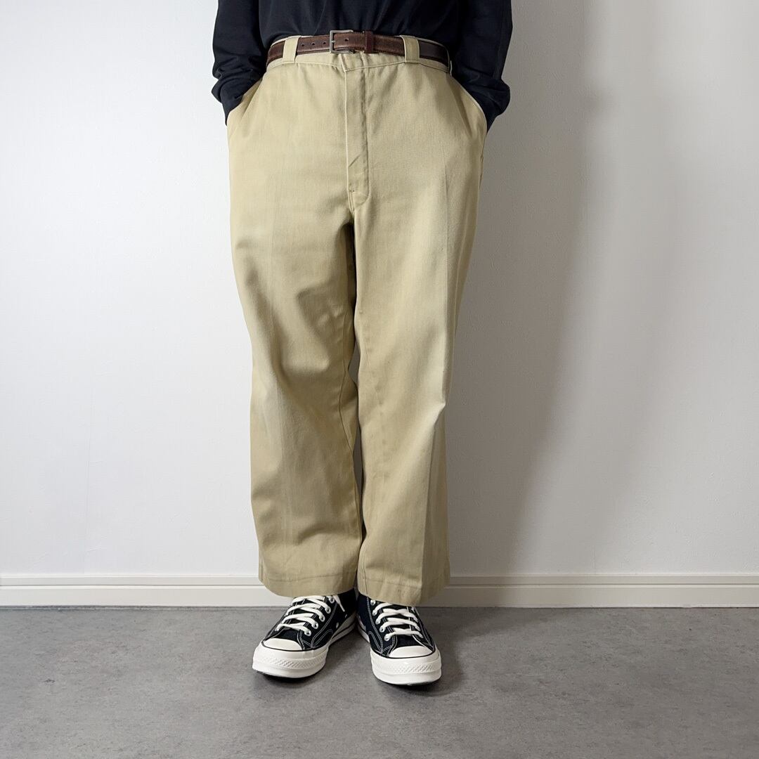 サイズ表記W38L29、丈詰ありで実寸でW37L26ほどのサイズ、ディッキーズは腰で落として穿くという方にも良いサイズ感かと思います
