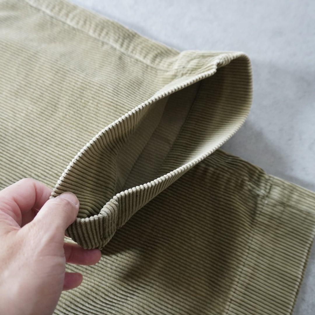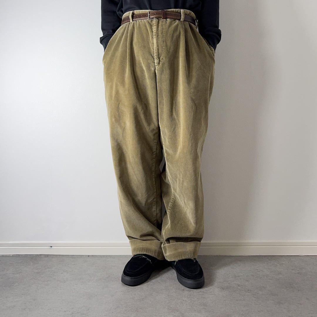 しっかり凹凸感のある太畝コーズにツータックのゆったり腰回りから裾に向かってストンと落ちるワイドなストレートシルエット