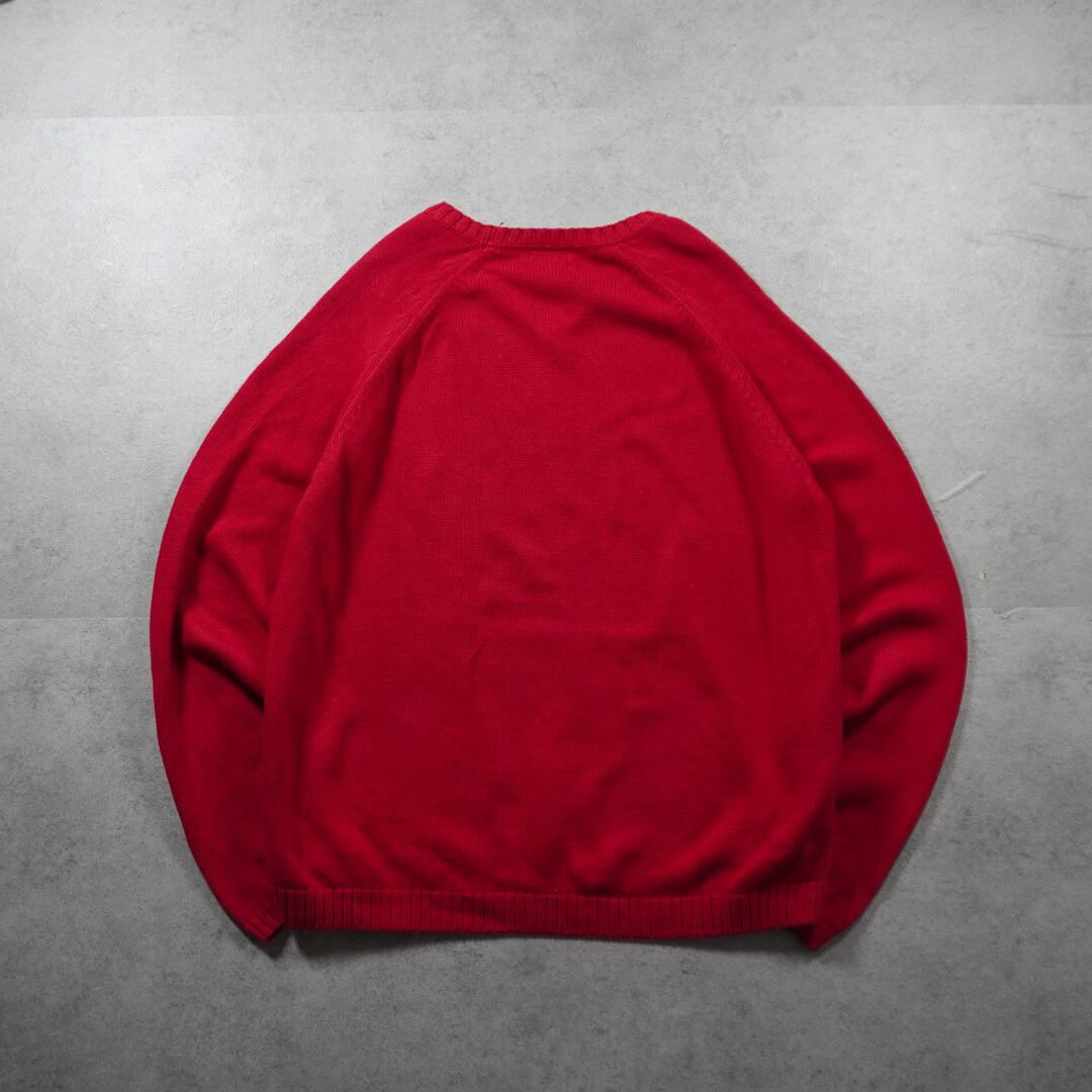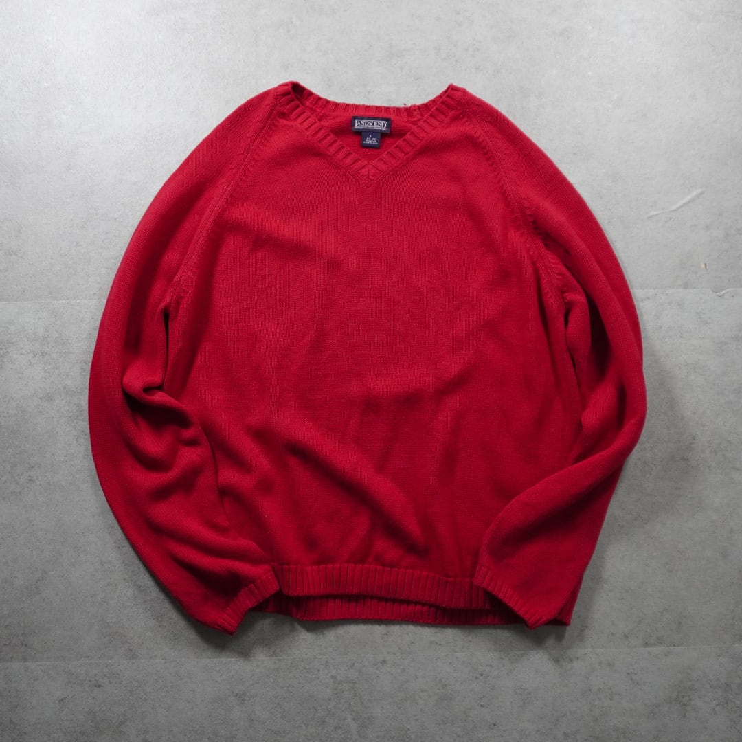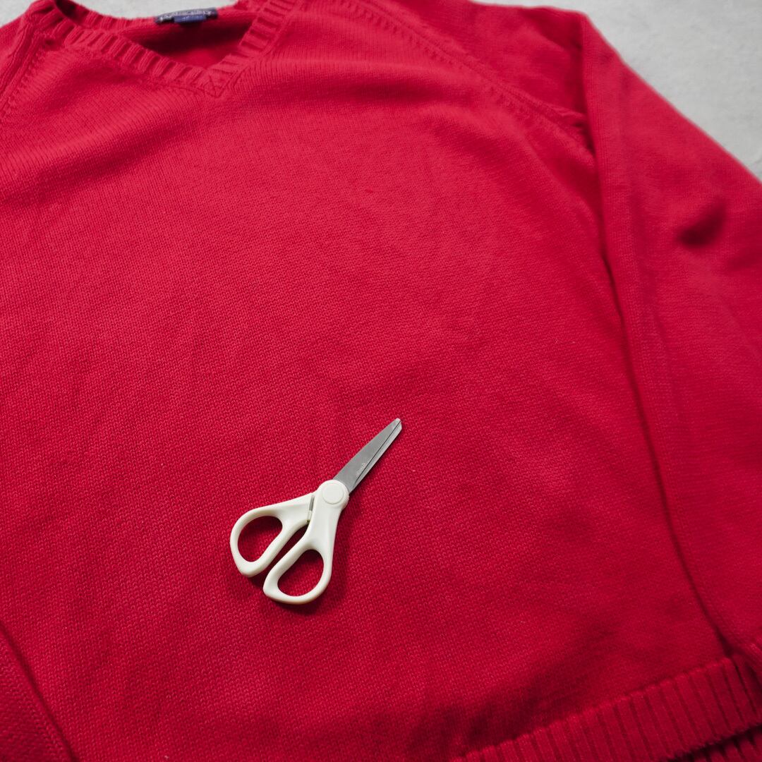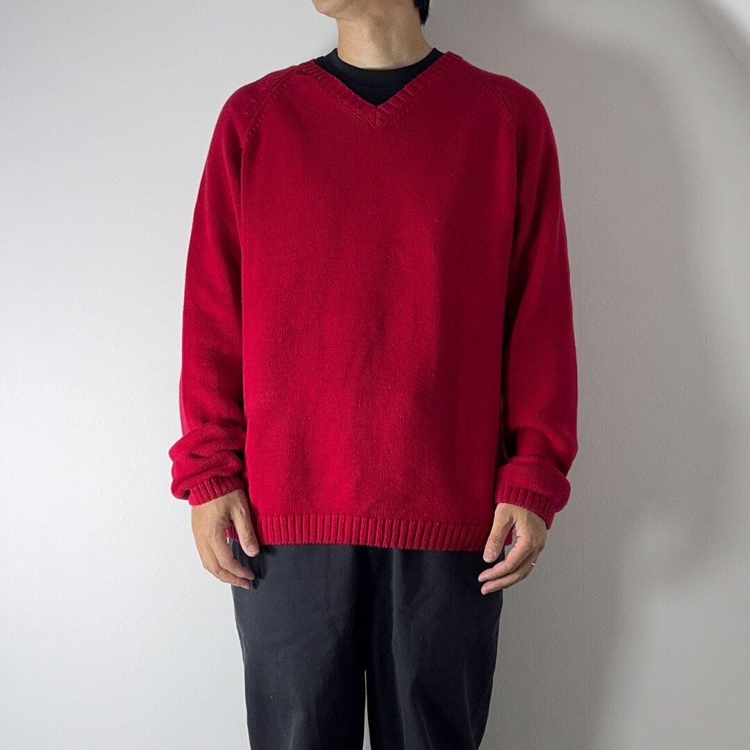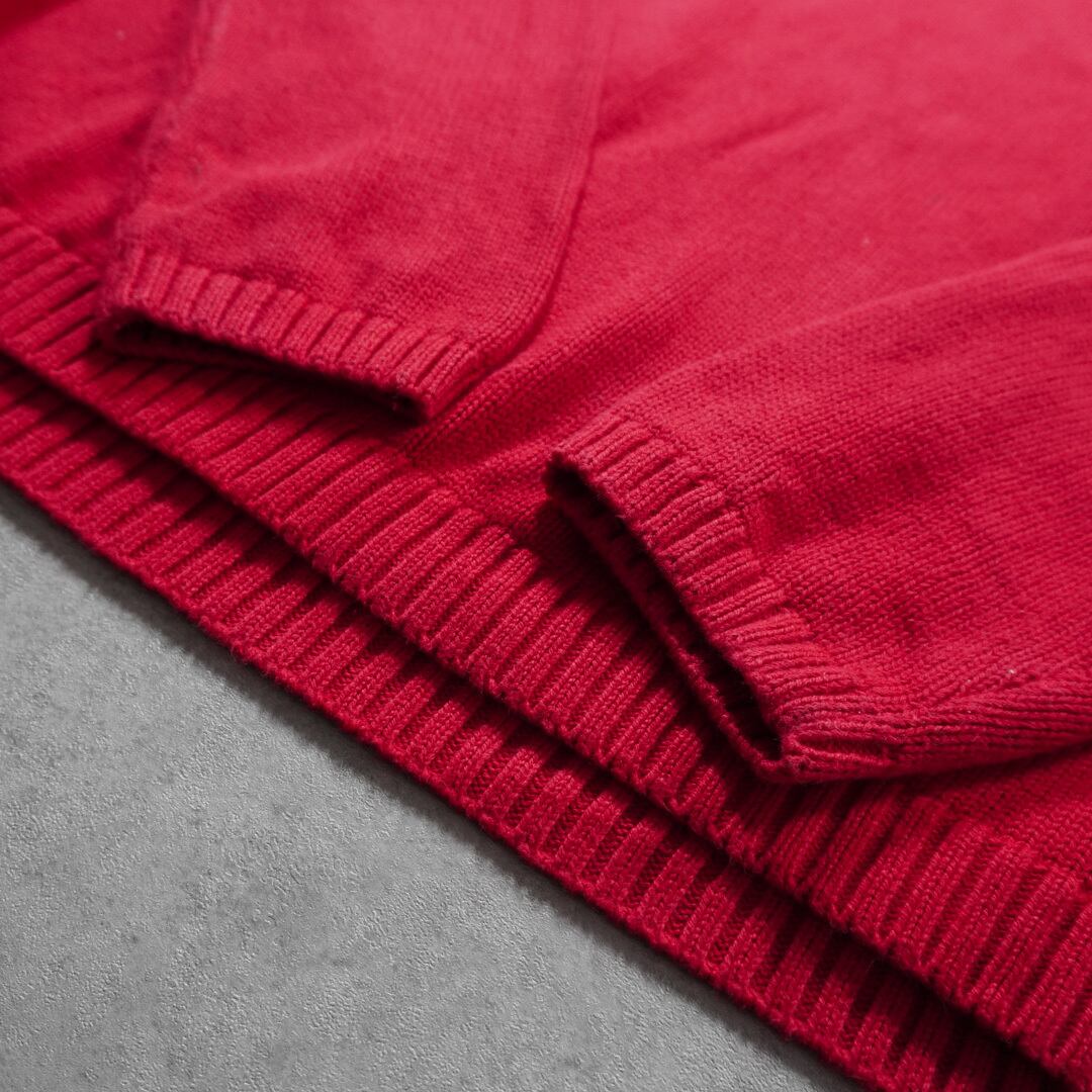 Vネックのカラーはレッド、表現が難しいですがほんの少しピンクやパープルがかった発色の良い独特な深みのある色味です