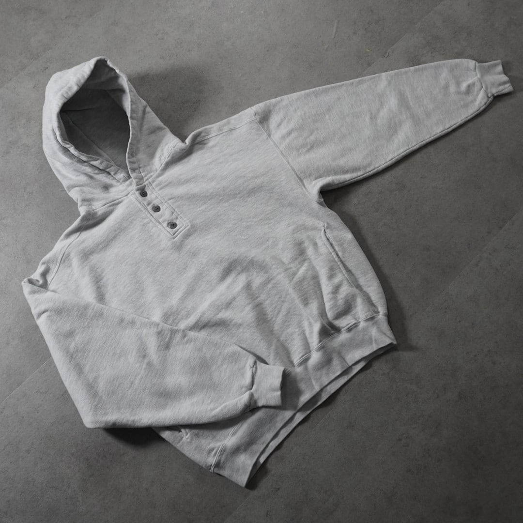 ラッセルのスウェットの中でも評価の高いハイコットンシリーズと同じコットン比率が高いヘビーオンスの生地にエルエルビーンらしいパーカーながらネックがヘンリーネックになっているディテールがたまらない一着