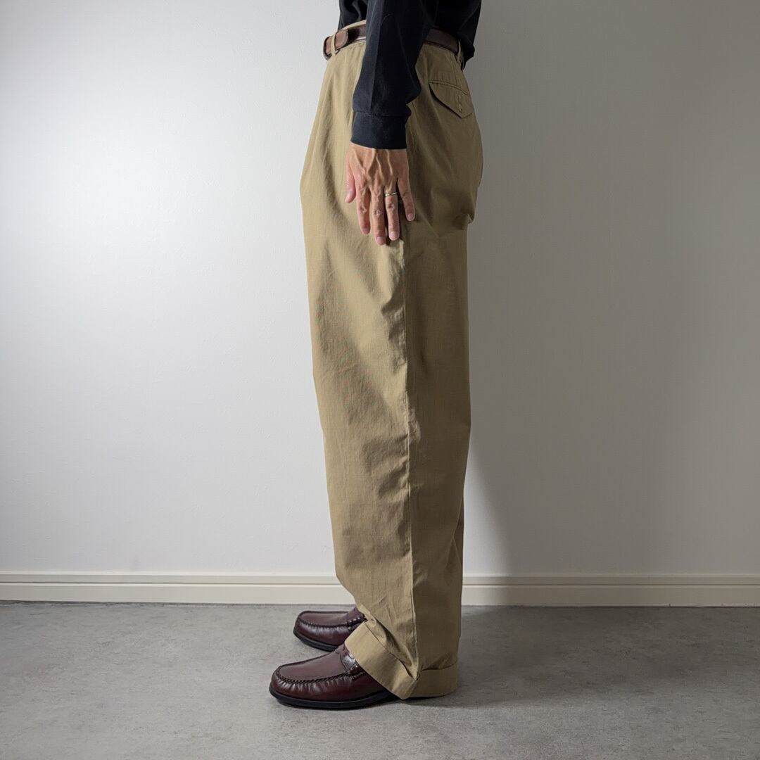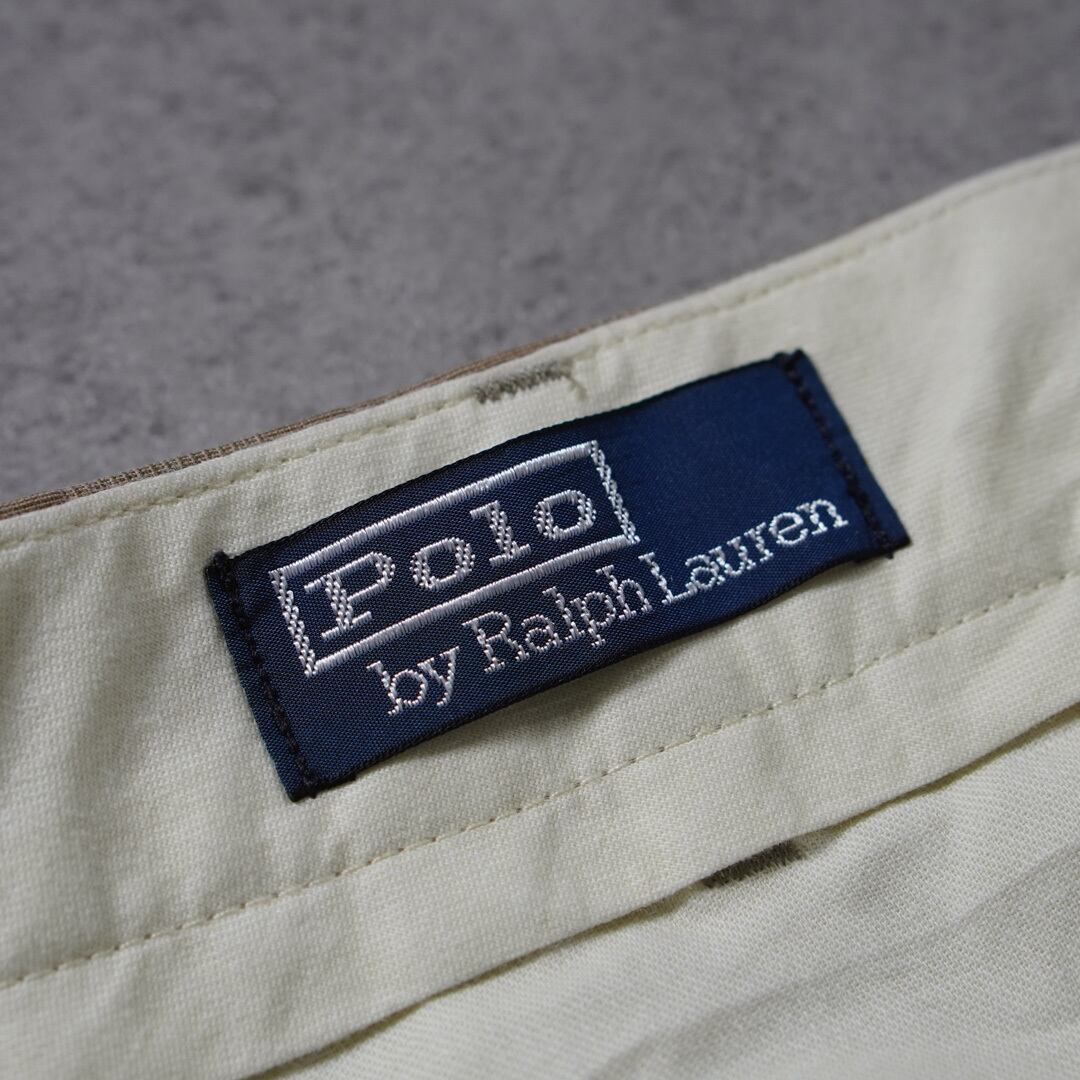 グレンチェック・ダブル仕立ての裾、フラップ付きのバックポケットなど丁寧なテーラードのそれとツータックのリラックスしたシルエットが融合したラルフらしい一本です