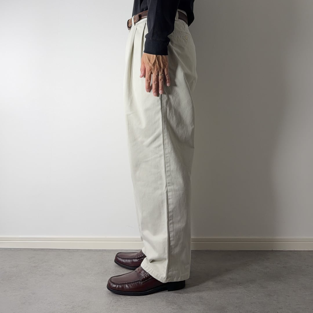 HAMMONDはANDREWと同じくウエストはツータックですがインプリーツではなくアウトプリーツ、また本来はHAMMONDの裾はダブルの仕立てになっていますが、こちら裾上げされておりシングルになっています