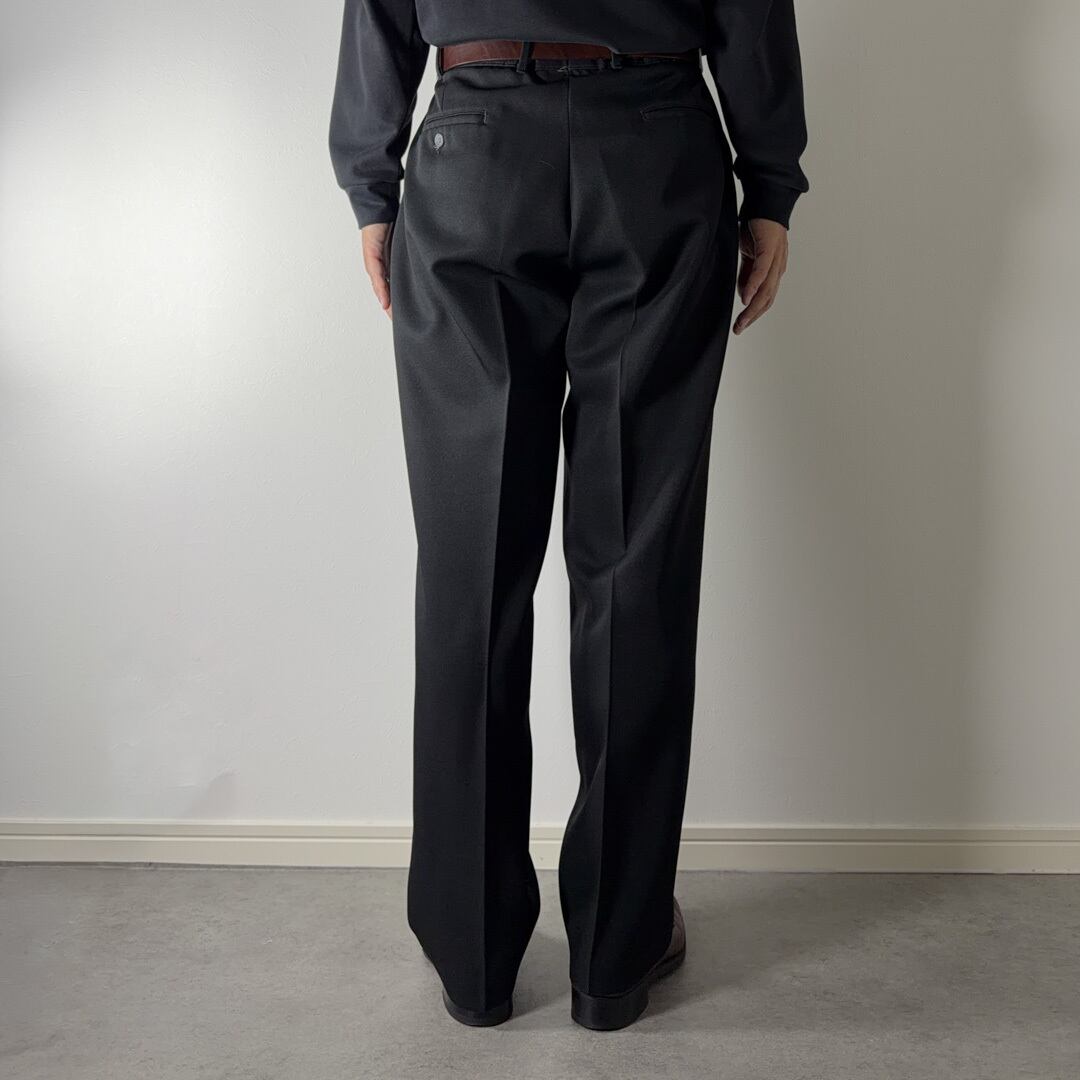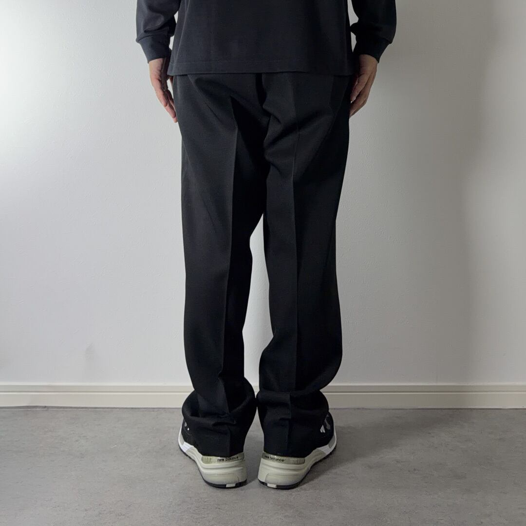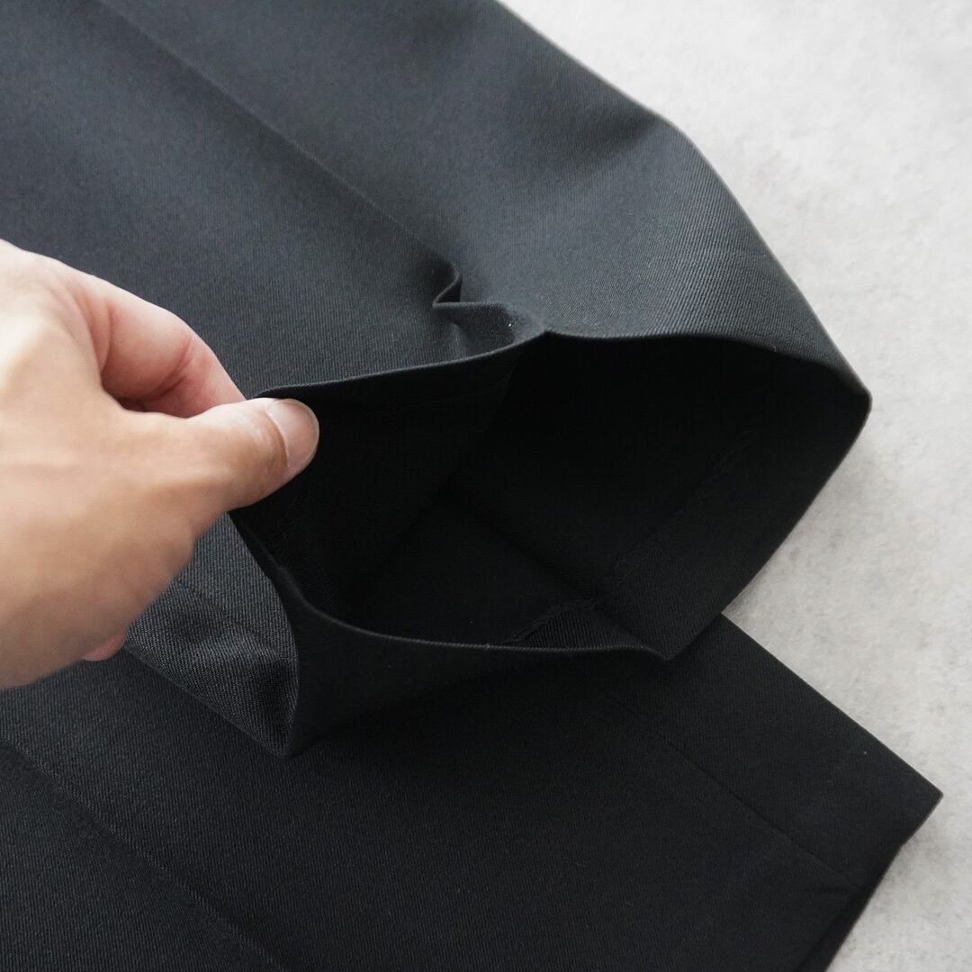 シワにならないイージーケアのスラックスのこちら、ポリエステル100%のサラッとした着心地と洗濯も可能なこちらは春夏にしっかり使えるアイテム