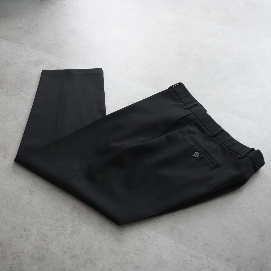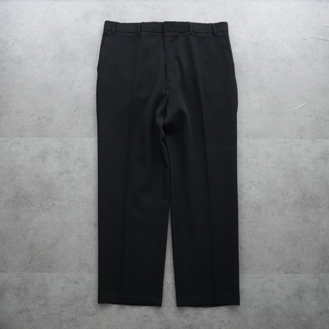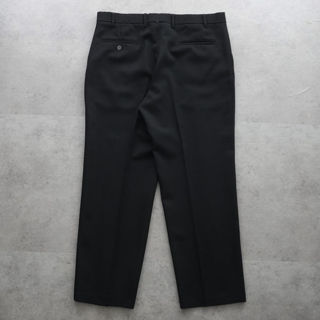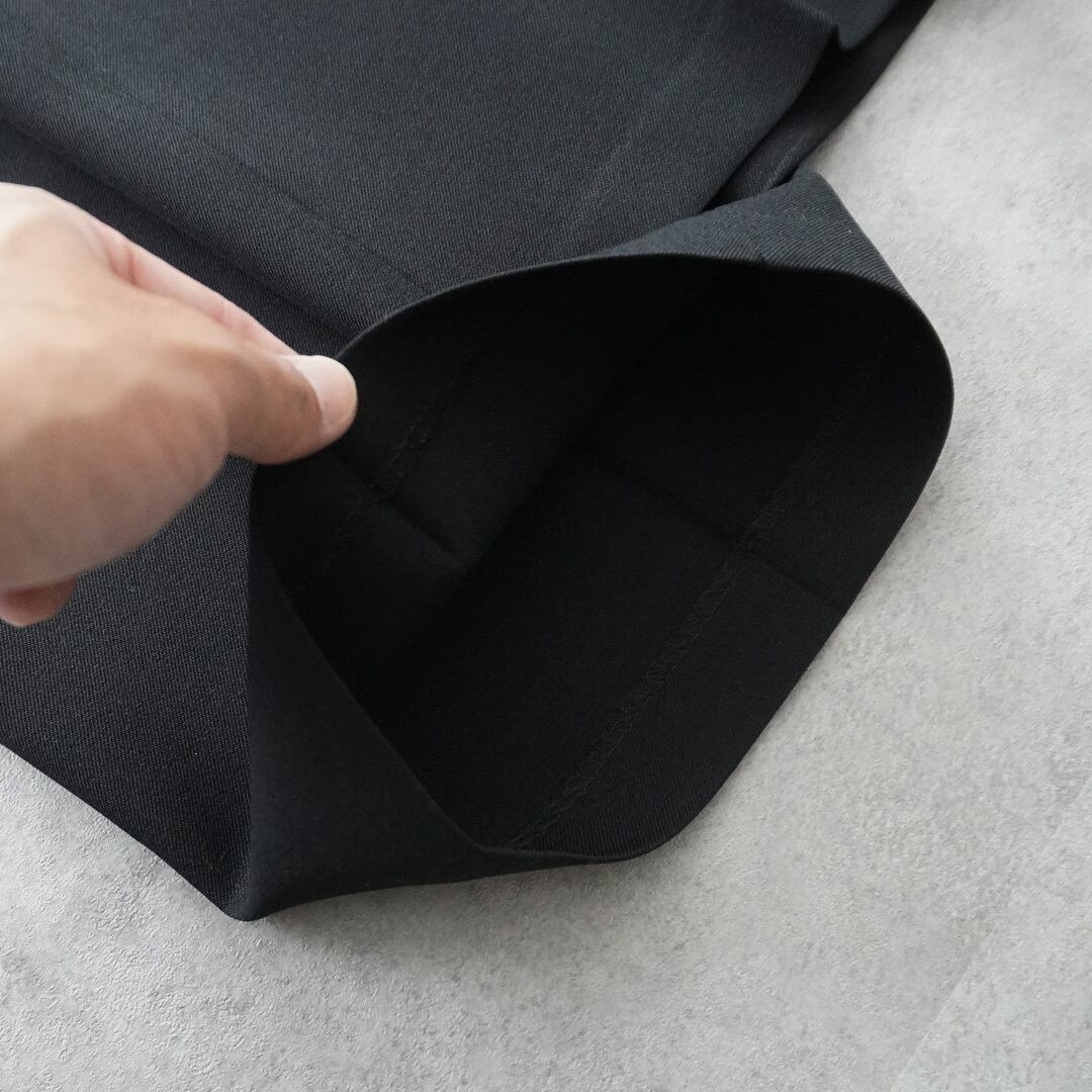 シワにならないイージーケアのスラックスのこちら、ポリエステル100%のサラッとした着心地と洗濯も可能なこちらは春夏にしっかり使えるアイテム